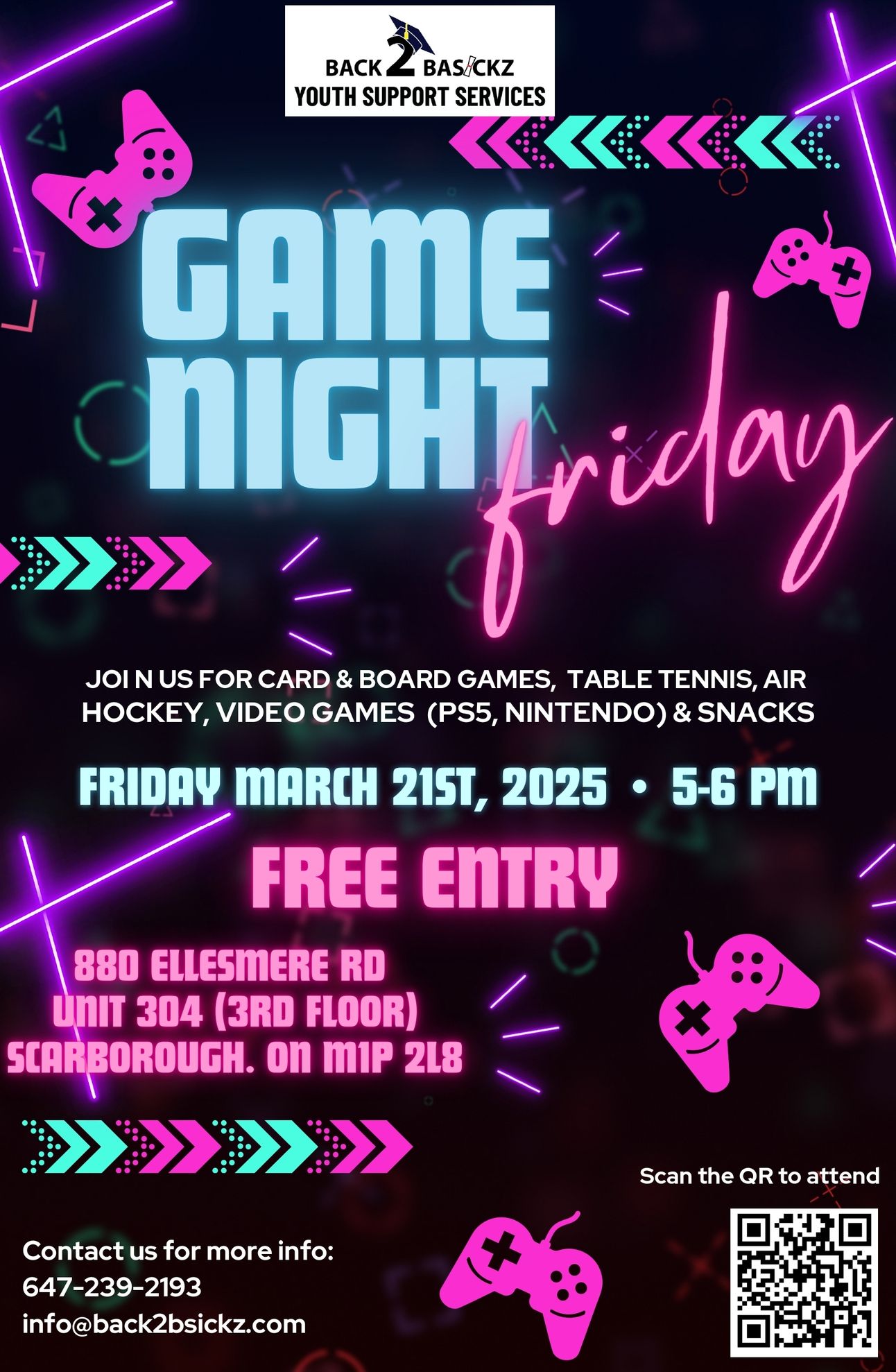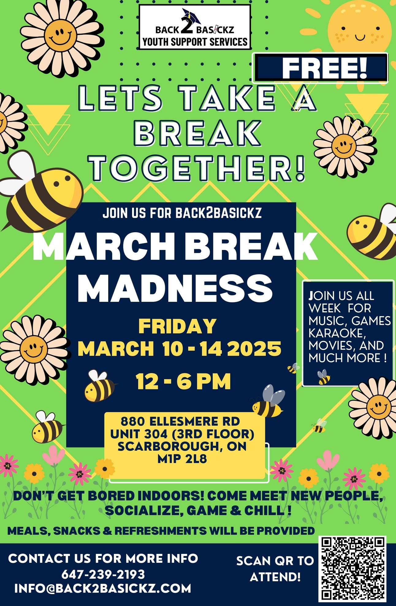 March Break Madness Come crush your boredom this March Break Friday at Back 2 Basickz! We are open from 12 Noon to 6pm for gaming, music, and chill. Food, snacks and refreshments will also be provided! | ![]() March 10th to 14th, 2025 @ 6:00 p.m. |