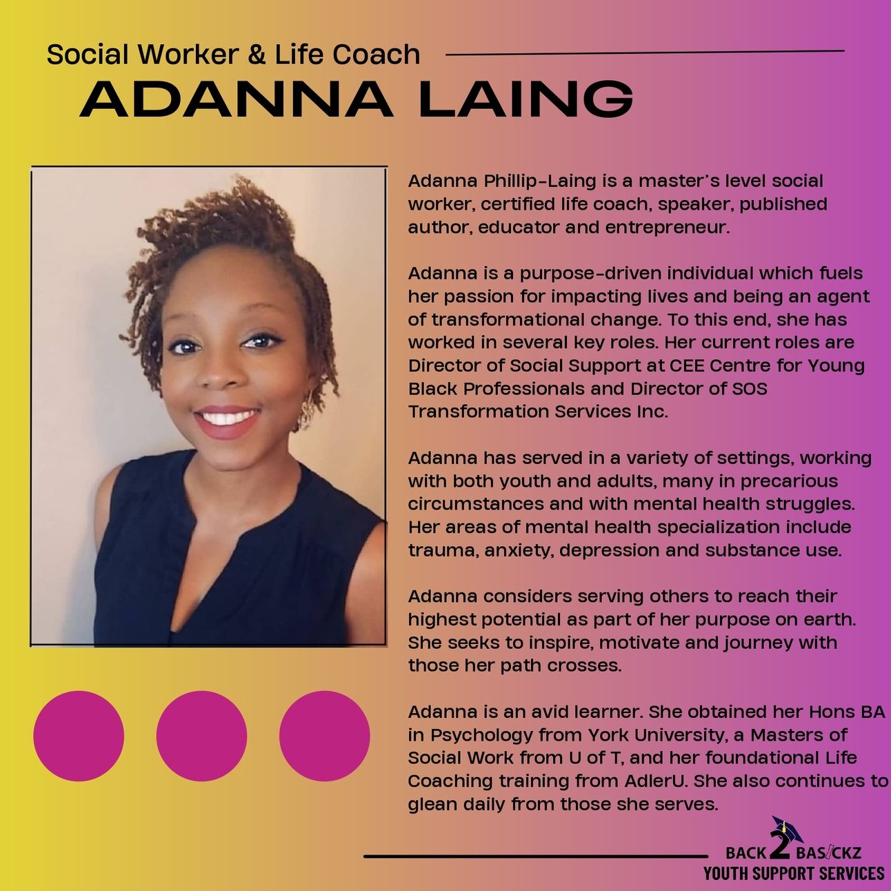 ![]() | Say hi to Luzviminda! Luzviminda is currently enrolled in the Addiction Recovery Support for Youth and Families program at CDI College. She is currently gaining hands-on experience through Back 2 Basickz Youth Support Services. Her passion is to helpi others (especially youth). As she says: “It is what drives me every day. I want to help inspire, empower, motivate and support people that struggle with addiction. I’m excited for the opportunity to connect with the youth and the community!” Welcome to our team Luzviminda! |